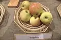 Alexander (a.k.a. Emperor Alexander, de. Kaiser Alexander, fr. Grand-Alexandre, pl. Aporta, ru. Aporta, Gusevkoe, Aport ukraininskii, Aport osennii)[6][23][30][25][26][31][32][33][12][16] Russia <1800 A very large apple. Width 95–110 mm (3.7–4.3 in), height 75–90 mm (3.0–3.5 in). Stalk 11–18 mm (0.43–0.71 in). Cells ovate, axile. Flesh is a faint yellow, firm, crisp, very soft, mild subacid, fair to good. Tree is vigorous. Particularly attractive blossom. Eating, cooking, baking, drying PickE mid-September; use September–December