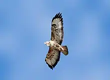 Bustards are large terrestrial birds mainly associated with dry open country and steppes in the Old World. They are omnivorous and nest on the ground. They walk steadily on strong legs and big toes, pecking for food as they go. They have long broad wings with "fingered" wingtips and striking patterns in flight. Many have interesting mating displays.