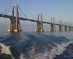 ![]() | 5 | General Rafael Urdaneta Bridge | 235 m (771 ft)(x5) | 8,678 m (28,471 ft) | Cable-stayed Concrete deck and cable-stays, 6 concrete pylons 160+5x235+160 | 1962 | Maracaibo 10°34′28.1″N 71°35′30.9″W / 10.574472°N 71.591917°W | Zulia | [S 5] [11] [12] | |