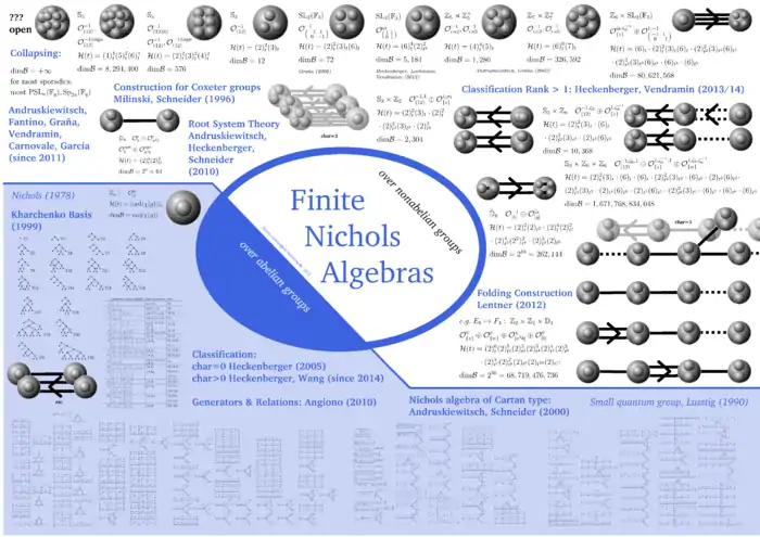 - 1 2 3 4 5 6 Andruskiewitsch, Nicolás; Heckenberger, István; Schneider, Hans-Jürgen (December 2010). "The Nichols algebra of a semisimple Yetter–Drinfeld module". American Journal of Mathematics. 132 (6): 1493–1547. arXiv:0803.2430. doi:10.1353/ajm.2010.a404140. JSTOR 40931047. S2CID 16050321.