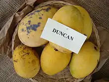 Duncan United States Duncan mango was patented by David Sturrock of West Palm Beach, Florida. The patent has long since expired. Duncan fruits in clusters and has excellent disease resistance. It is a mid-late season mango.