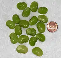 | Phaseolus lunatus | Lima bean or butter bean | Raw beans contain dangerous amounts of linamarin, a cyanogenic glycoside. | ![]() |