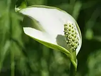 | Calla palustris | Also known as marsh calla, wild calla, and water-arum. | The plant is very poisonous when fresh due to its high oxalic acid content, but the rhizome (like that of Caladium, Colocasia, and Arum) is edible after drying, grinding, leaching, and boiling.[50] | ![]() |