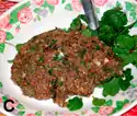 A Lao and Thai salad of raw freshwater river fish mixed with lime, cilantro, mint, scallions, roasted rice, chilis