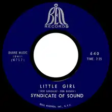 "Little Girl" is a song recorded by the California garage rock group the Syndicate of Sound, and written by Don Baskin and Bob Gonzalez of the band. It reached the US national pop charts in June 1966, peaking at #5 on Cash Box and #8 on Billboard.