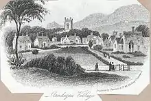 The village of Llandygái is recorded at the beginning of the nineteenth century as consisting of eight or nine houses.[7] The village was later developed by quarry owner The 1st Baron Penrhyn (1800-1886) as a ‘model village’ for his estate workers, in which ‘no corrupting alehouse’ was permitted.[5] It lies immediately outside of the walls of the Penrhyn Castle demesne walls, with the entrance to the village being some 100 yards (91 m) from the castle's Grand Lodge. Lord Penrhyn, a Scottish aristocrat, had inherited the Penrhyn Estate from his father-in-law, George Hay Dawkins-Pennant (1764-1840), in 1840.
