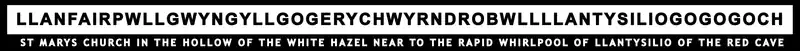 In some contexts the name of the community is lengthened to Llanfair­pwllgwyngyll­gogery­chwyrn­drobwll­llan­tysilio­gogo­goch ([ˌɬan.vair.pʊɬ.ˌɡwɨ̞ŋ.ɡɨ̞ɬ.ɡɔ.ˌɡɛ.rə.ˌχwərn.ˌdrɔ.bʊɬ.ˌɬan.tə.ˌsɪl.jɔˌɡɔ.ɡɔ.ˈɡoːχ] ). With 58 characters split into 18 syllables, it is purported to be the longest place name in Europe and the second longest one-word place name in the world.[6][7]