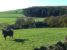 Manufacture of knives took place in Dungworth in the 17th and 18th centuries;[14] the nearby 'Sykehouse' (c. 1800) at Syke House farm has hearths and workshop dating from the period.[15] The census of 1861 shows a large number of men in the Dungworth, Hill Top and Storrs area who combined farming with the production of knives in small workshops attached to their cottages.[10] Coal was mined near Dungworth up to the 19th century; it was found in association with ganister.[16]