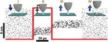 Currently, local oxidation experiments are performed with an atomic force microscope operated in contact or noncontact mode with additional circuits to apply voltage pulses between tip and sample. The local oxidation process is mediated by the formation of a water meniscus.[4]