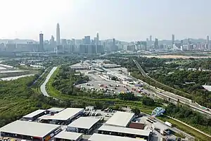 Lok Ma Chau Control Point (Chinese: 落馬洲管制站) is an immigration control point in Lok Ma Chau, Yuen Long District, New Territories, Hong Kong, which is on the border between Hong Kong and mainland China.[1] It opened in 1989 as the third road crossing between the then British dependent territory and China. It started providing 24-hour passenger clearance in January 2003, and is still the only Hong Kong control point with Shenzhen in mainland China to do so.[2] Its counterpart is the Huanggang Port in mainland China, across Sham Chun River and interconnected by the Lok Ma Chau Bridge.