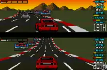 The first game in the series was released in 1990 8-bit and 16-bit computer systems, the Amiga and Atari ST versions. The game allowed the player to race a Lotus Esprit Turbo SE car through several (32 in the Amiga version) circuit race tracks of varying scenery. Two player simultaneous play (with split screen) was also provided, and a choice of audio tracks to accompany races.
