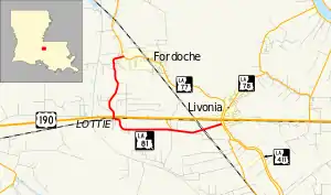 Class "C": La 81—From a junction with La 77 at or near Livonia to a junction with La-US 190 at or near Lottie.— 1955 legislative route description[14]