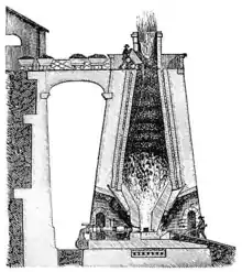 Construction of the plant began in June 1790, including blast furnaces and casting shops.[10] The furnaces had square bases, tapering as they rose to about 50 feet (15 m) in height.[11] The two furnaces were blown in on 13 August 1791 and the first casting was made by the forgemen three days later.[12] At first the works produced domestic goods, but soon began producing industrial products including parts for steam engines.[11] In 1795 the company won contracts to provide guns, shot and shells to the government, which had been at war with revolutionary France since 1793. By 1799 the works were producing about 2,000 tons of pig iron per year, from which iron goods were made that ranged from columns used in mill construction to garden furniture.[13]
