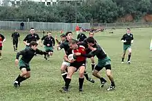 The Loyola University Rugby Football Club is the men's rugby union team that represents Loyola in the National Small College Rugby Organization.[22] The club is composed of over 50 student-athletes, alumni volunteers, and professional trainers. Founded in 1976 by a group of Loyola students, LURFC continues to be the oldest and most active club sport at the college.[23] LURFC and its players have achieved many All-American titles and U.S. Rugby rankings, currently ranked #8 in the country and in the NSCRO "Sweet 16" in 2017.[24]