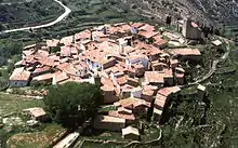 The core of Luco de Bordón is built on a hilltop and surrounded by half of a ravine near Bordón River, a tributary of the River Guadalope.