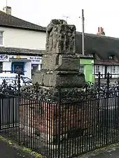 The remains of a Medieval preaching cross known as Ludgershall Cross are situated in the town centre and the cross dates to the 14th century, likely during the reign of Edward III (r.1327-77). This is also under the care of English Heritage.[11] It was re-erected some time in the early 19th century in the area that formed the old market place, near the present Queen's Head pub at the end of High Street. It is some 12 feet in height and in 1897, to celebrate the Diamond Jubilee of Queen Victoria, an ornamental iron fence was erected around the cross. The cross has carved representations on four sides but they are badly eroded. It is thought the original sculptured panels represented: