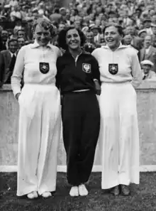 ![]() Tilly Fleischer (left), Maria Kwaśniewska and Krüger at the 1936 Summer Olympics | ||