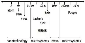 - If its feature size is between 0.1 µm and hundreds of micrometers. (below this range, it becomes a nano device and above the range, it is considered a mesosystem)