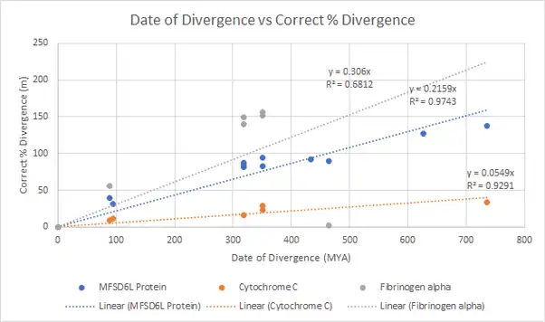 As a result of the MFSD6L protein's presence in Cnidaria and absence in Porifera, the estimated emergence date of the MFSD6L gene lies between 687 and 777 MYA, which are the divergence dates found from TimeTree.[20] From the corrected % divergence chart and calculations of the corrected % divergence of the Homo sapiens MFSD6 paralog, the estimated date of emergence of the MFSD6L protein was found to be around 736 MYA.