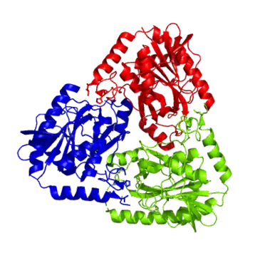 MTAP quaternary structure with different subunits indicated by different colors (red, blue, and green).[19] Generated using PyMol.