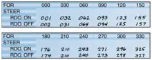 Once the compass has been corrected using small magnets fitted in the base and with soft iron balls, any residual deviation is recorded as a table or graph: the compass correction card, which is kept on board near the compass.[6]