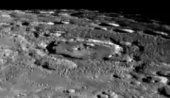 Magritte is a crater on Mercury, near the south pole. This crater was likely created by an impact event, as evident by its circular depression.[1] Its name was adopted by the International Astronomical Union in 2012, after the Belgian painter, René Magritte.[2] Magritte is one of several craters on Mercury named after famous artists. Per the Working Group for Planetary System Nomenclature, all Mercury craters are named after an artist who was famous for more than fifty years who has been deceased for more than three years at the time the crater is named.[3]