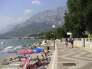 The Makarska Riviera is a part of the Croatian coast of the Adriatic Sea, about 60 kilometers (37.2 miles) long and only several kilometers wide, squeezed under towering mountain Biokovo. Sunny climate and long pebbly beaches make this region a popular tourist destination. A string of settlements along the coast from the border with Omiš coast on northwest to Neretva Delta on the southeast: