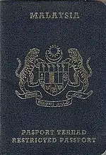 The restricted passport (pasport terhad) is issued to Malaysian citizens for travel to a specific country only. They have blue covers.