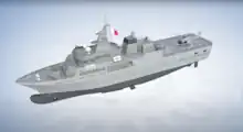 P71 also has a helicopter deck which caters for the landing and refuelling of seven ton helicopters, like the AgustaWestland AW139 operated by the Air Wing.[9] The vessel is also equipped with two 9.1 metres-long rigid inflatable boats, with one located on the starboard side and the other on the stern.[11] Both RHIBs can reach a maximum speed of 40 knots (64 km/h; 46 mph).[10] It also has an integrated command, control and navigation system, which includes a 2D surveillance radar, a navigation radar and satellite communications.[9]