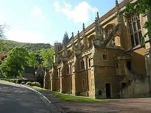 Set in the Malvern Hills, the school's location owes much to Malvern's emergence in the nineteenth century as a fashionable spa resort, appreciated for its unpolluted air and the healing qualities of its famous spring water. The school opened its doors for the first time on 25 January 1865 under the headship of Arthur Faber. Initially, there were only twenty-four boys, of whom eleven were day boys, six masters and two houses, named Mr McDowall's (No.1) and Mr Drew's (No.2). The new school expanded. One year later, there were sixty-four boys.[6] By 1875, there were 200[7] on the roll and five boarding houses ; by the end of the 19th century, the numbers had risen to more than 400 boys[8] and ten houses.[9][10] American poet Henry Wadsworth Longfellow visited the school in 1868,[5] Prince Christian of Schleswig-Holstein and Princess Helena of the United Kingdom on speech-day in 1870,[5] and Francis, Duke of Teck, and Princess Mary Adelaide of Cambridge visited in 1891 with their daughter, Mary of Teck (later Queen Mary).[5] Lord Randolph Churchill's speech-day comments on education in 1889 were reported in The Times.[11] The school was one of the twenty four public schools listed in the Public Schools Yearbook of 1889 and was incorporated by royal charter in 1928.[12] Further expansion of pupil numbers and buildings continued between the end of the First World War in 1918 and the start of the Second World War in 1939.