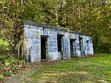 Since Fort Ward could protect part of Puget Sound with its four coastal artillery batteries, the primary defensive tactic at Middle Point was the operation of a minefield in Rich Passage.[3] The mines were electrically controlled from a mining casemate, being able to detonate at the will of the operator instead of from direct contact.[4] In 1901, a torpedo warehouse was built at Middle Point as a place to store the naval mines that would be used in the minefield. Later, the warehouse was "used as an officers' club, barracks, and mess hall".[5]