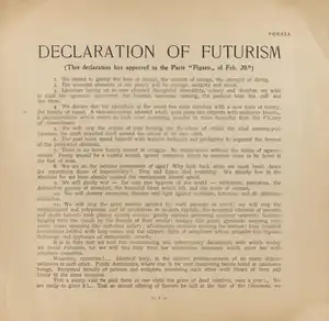 - ↑ "Manifesto of Futurism | British Library". www.bl.uk. 2023-09-28. Retrieved 2023-09-28.