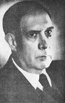 Although seeking the development of a new and stronger national identity, Gálvez had initially stopped short of supporting any major changes to the country's political system.[9] However, in 1925 Gálvez adopted Italian fascism as his preferred mode of government, arguing that it was the only way to prevent the weak government that he felt was aiding the growth of his declared enemies of communism, immigration and American imperialism.[1] He would also look to the example of the Falange, arguing that these fascist groups were the only ones capable of defending religion and tradition from "Satanic" communism.[10]