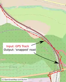 Map matching is implemented in a variety of programs,[11][12] including the open-source GraphHopper and Open Source Routing Machine routing engines.[13] It is also included in a variety of proprietary programs and mapping/routing applications.