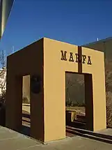 Building 98, also located in Marfa, is a project of the International Woman's Foundation, which has operated an artist-in-residency program since 2002. The International Woman's Foundation was responsible for placing Fort D.A. Russell on the National Register of Historic Places as an effort to preserve the historic importance of the site.[21] The facility's studio galleries host artists who desire to exhibit work in the region at a premier venue. In late September 2012 through early April 2013, the foundation held a major retrospective of the works of Wilhelmina Weber Furlong at Building 98 featuring over 75 unseen works of the early American woman modernist. Building 98 is located at historic Fort D. A. Russell; it is the home of Marfa's German POW murals.[22][23] The facility also features the George Sugarman sculpture courtyard.[21]
