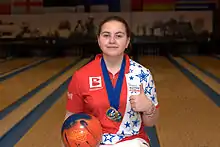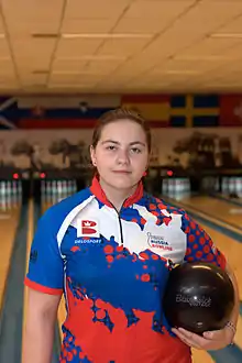 Maria Bulanova (born October 13, 1998) is a right-handed ten-pin bowler from Moscow, Russia, and is considered one of the top players on the Federation of Bowling of Russia. The youngest holder of the highest Russian's bowling sports rank - Master of sports of Russia of the international class. Russian national team (youth & adult) member since 2012. Champion of Russia 2013-2015, the first in Russian history individual[1] and team[2] gold winner in international youth championships. Fifteen time prize winner of European youth championships (3 gold, 6 silver and 6 bronze). Winner of European Champions Cup 2015. The first Russian athlete to win a Gold medal in an international adult championship.[3] She is a member of team Alliance (Nizhniy Novgorod, Russia) and a member of the Brunswick pro staff.