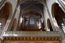 The Walcker organ is considered to be important.[4] The original organ was built in 1863 supplied by the company, Eberhard Friedrich Walcker from Ludwigsburg. It had 53 stops and a mechanical action. In 1900 the mechanical tracker action was replaced by a pneumatic action, in 1929 by an electro-pneumatic action, and finally in 1970 (Gebr. Oberlinger, Windesheim) by an electric organ with play and stop action.