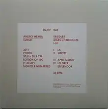 It was released August 2011 in a hand-numbered edition of 100 (plus 30 Artist's proofs) on Dutch/German label en/of[7][8] (EN/OF 043).