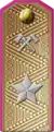 The rank insignia of marshal of the branch was a large (~50mm-wide) five-pointed shoulder board star (at the time the same star was used on the shoulder boards of marshals of the Soviet Union). A marshal of the branch wore the second level five-pointed marshal's star on his uniform necktie.