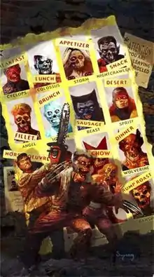 ![]() Cover to Marvel Zombies vs. The Army of Darkness #1. Art by Arthur Suydam. | |