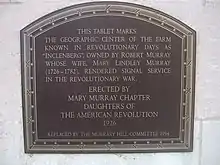The scene of Mary Murray's detention of the British officers took place in the neighborhood of Manhattan now known as Murray Hill.[2]