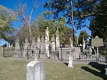 Mayfield is home to the Wooldridge Monuments, a series of historical monuments located in Maplewood Cemetery. They were built for Colonel Henry G. Wooldridge from 1892 until Wooldridge's death on May 30, 1899, to commemorate family members and other loved ones. The lot has been called "The Strange Procession That Never Moves."[26]