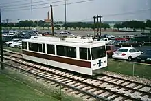 Built as a single-ended PCC (Presidents' Conference Committee) streetcar by St. Louis Car Company in 1945 for (Washington) DC Transit. Operated by DC Transit as car 1506 until abandonment of that system in February 1962. Bought by Fort Worth's Marvin and Obediah Leonard for their rail shuttle line from their vast parking lot to their downtown department store's basement station via a 1,400-foot subway. It was rebuilt as a double-ended car and given a more "modernized" appearance in Fort Worth — stainless steel siding and blue roof trim. This modification did not completely conceal its standard PCC design heritage. Old 1506 was renumbered as M&O #2. No. 2 served as a Tandy Center Subway car until the line was abandoned on August 30, 2002. Despite modifications to soften the car's lines, it retained a distinctive shape reminiscent of a Winnebago — hence the nickname.[27]