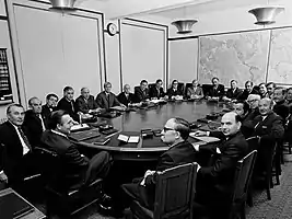 The McMahon ministry (Liberal–Country Coalition) was the 46th ministry of the Australian Government. It was led by the country's 20th Prime Minister, William McMahon. The McMahon ministry succeeded the Second Gorton ministry, which dissolved on 10 March 1971 following the resignation of John Gorton as Prime Minister. The ministry was replaced by the First Whitlam ministry on 5 December 1972 following the federal election that took place on 2 December which saw Labor defeat the Coalition.[1]