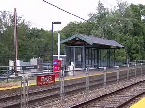 Meadowbrook station is a regional rail stop along the SEPTA West Trenton Line. It is located at Mill Road & Lindsay Lane in Abington, Pennsylvania. The station has off-street parking. In FY 2013, Meadowbrook station had a weekday average of 141 boardings and 129 alightings.[2] The station building was destroyed by an early morning fire on April 18, 1995 and was replaced by the bus shelter type of facility that currently serves as the waiting area.[3]