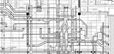 - Represent ductwork by either double or single line layouts as required to ensure that the routes indicated are feasible.