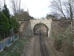 ![]() The line being crossed by the Maidstone East line near Maidstone Barracks. There is no direct rail connection between them.