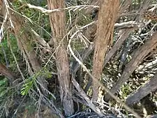 This melaleuca occurs in the Murchison River area[2] in the Geraldton Sandplains biogeographic region.[7] It has a restricted distribution but is locally common, especially in dry gullies and creek beds.[8]