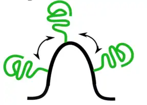 The protein crowding mechanism hypothesizes that proteins can bend membrane without directly perturbing membrane structures like the above mechanisms.[15][16] When a high enough local concentration of protein is present on membrane surface, repulsion between protein molecules on the membrane surface can induce membrane curvature.[17] Although contribution of this mechanism remains unclear, multiple experimental and computation evidences have shown its potential in bending membrane. A recent study even shows that protein crowding can cause membrane bending and leads to membrane fission.[18][19] These studies suggest that high local protein concentration can overcome the energy barrier to bend lipid membrane, and thus can contribute to membrane bending.