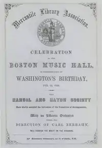 The Mercantile Library Association (1820-1952) of Boston was an organization dedicated to operating a subscription library, reading room and lecture series. Members included James T. Fields and Edwin Percy Whipple.[1] Although the association had a relatively long history, its heyday occurred in the mid-19th century, particularly the 1840s and 1850s.[2]